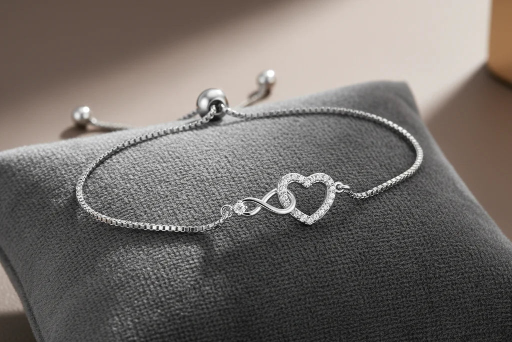 The classic Heart Infinity Bracelet features a simple yet elegant design, crafted from genuine 925 sterling silver with a heart & infinity motif and refined crystal accents. Known for its timeless symbolism and romantic appeal, it’s suitable for everyday wear and meaningful occasions alike.