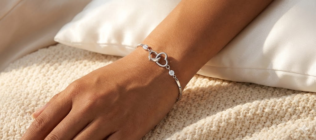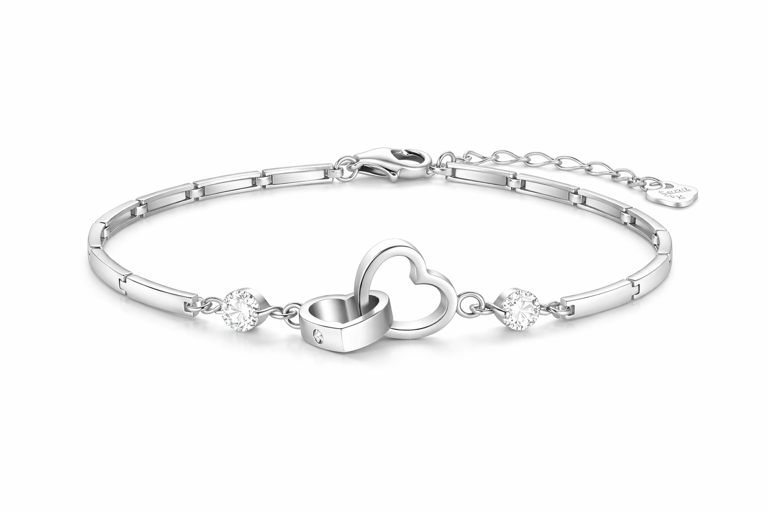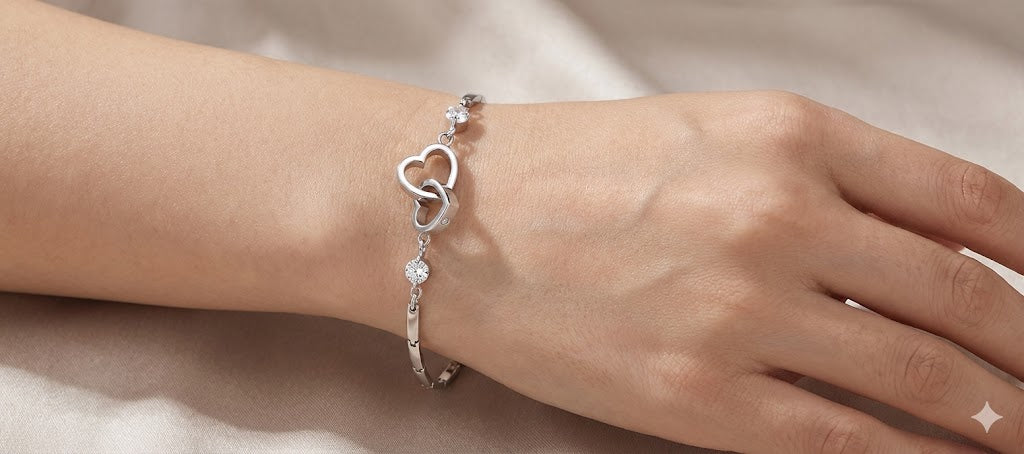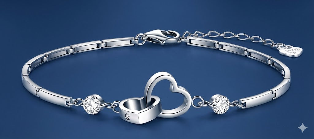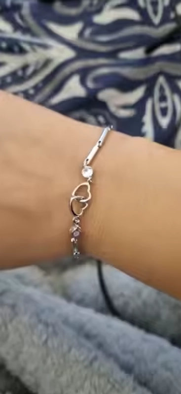 Our Interlocked Heart Bracelets are favored for their comfortable fit, polished shine, and subtle sparkle. Accented with zircon and crystal details, it catches the light in a clean, classy way—easy to wear daily, yet elevated enough for events. The adjustable extender ensures a secure, custom fit.